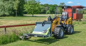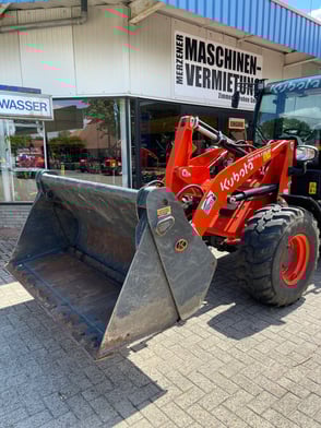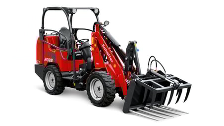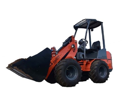 Durch die geringe Durchfahrbreite und Höhe zeichnet sich dieser Radlader besonders aus. Eine Durchfahrt schmaler Gartentore und Türen ist kein Problem.